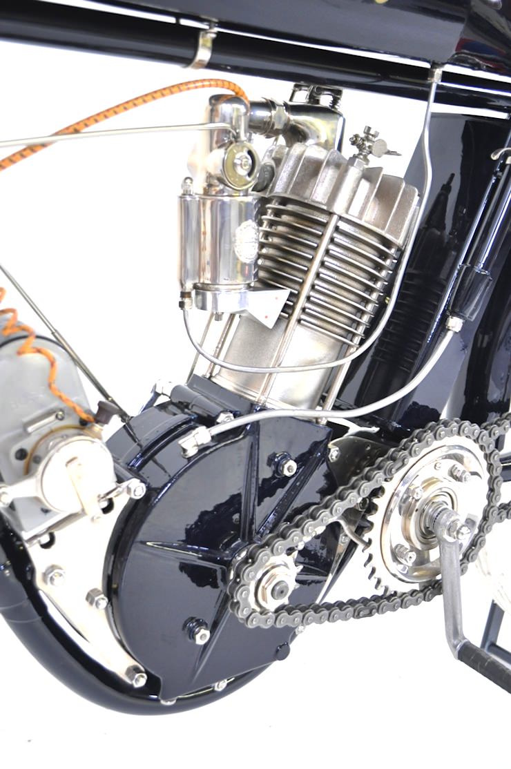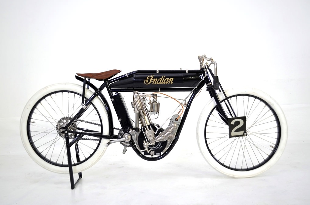 This particular Indian board tracker was recently restored by award-winning car and motorcycle artisan Jim Prosper, the original bike was so complete that the only 2 non-factory parts on it are the fuel tank and handlebars.