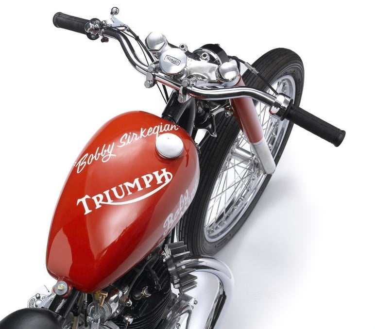 Baby Mine is a highly tuned drag racing motorcycle built and ridden by teenage drag racing sensation Bobby Sirkegian. Sirkegian started racing at the age of 13 in the early 1950s, he became a household name when the popular television programme ”You Asked For It” featured him in 1954, racing his Triumph against all comers on a number of Southern Californian quarter-mile dragstrips.