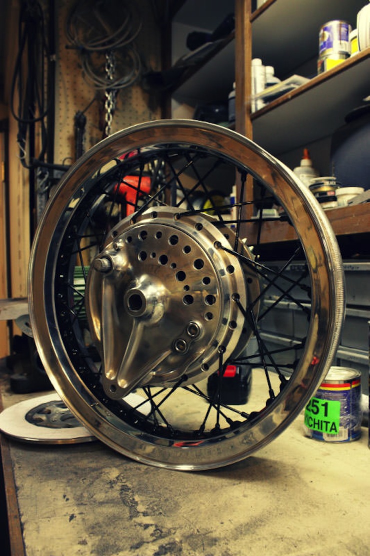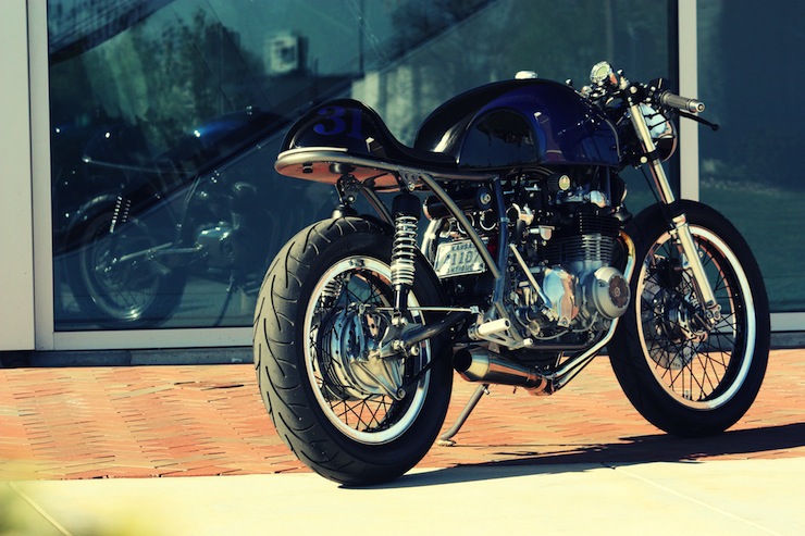 After rebuilding the engine thoroughly he set about reducing unsprung weight, this led to the rear drum cover getting drilled and any remaining elements of the bike that weren’t utterly essential were tossed. The finished bike is a case-study in 21st century cafe racers – it’s clean, quick, minimalist and has the look of a motorcycle that’ll never go out of style.