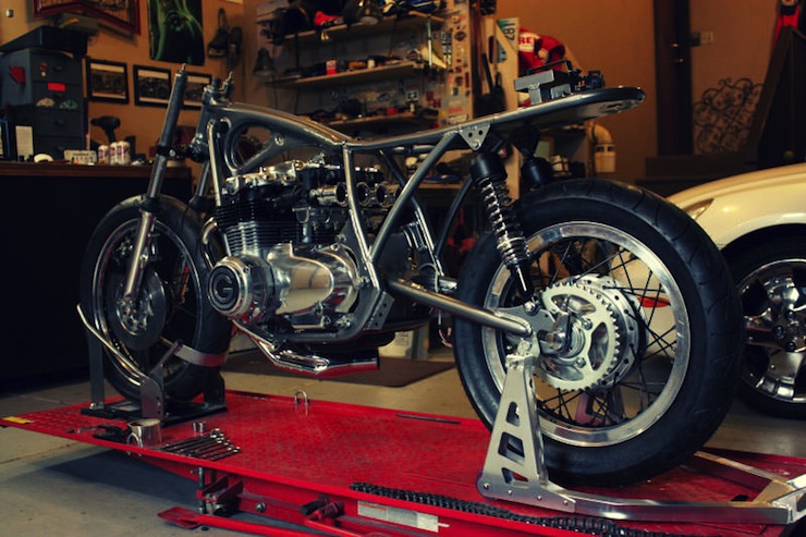 This bike is Chad’s first foray into building cafe racers with his own two hands, he’s gone for a minimalist approach which we always love and he’s chosen to build a Honda CB550 – which is easily one of the most “cafe-able” vintage motorcycles in the world.