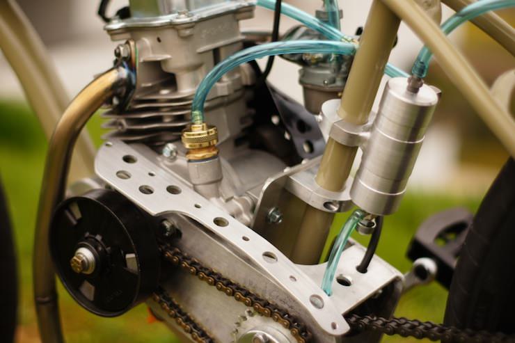 Jeff Wolf, the proprietor of Wolf Creative Customs, started building race-specific motorised bicycles for his son a few years back, he decided that the standard frames and engines were unreliable and a little on the finicky side so he started building his own stripped back racers from the ground up.