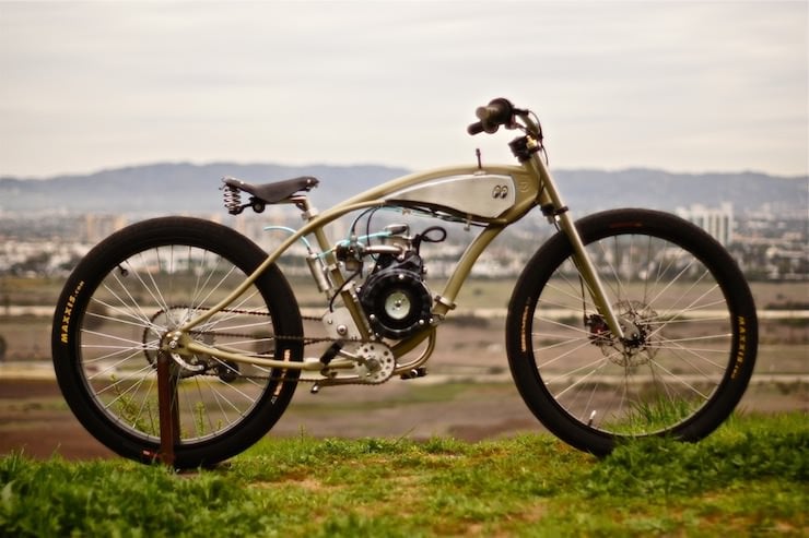 Slapping a motor into the frame of a bicycle, laughing at the idea of suspension, then setting out to race your friends at speeds that are quite remarkably excessive are the founding principles of the world of motorcycling. The pioneers who created the very concept of the motorcycle could look at the bike picture above and below and instantly recognise it as a motorised velocipede, which if we’re honest, actually sounds a lot cooler than “motorbike”.