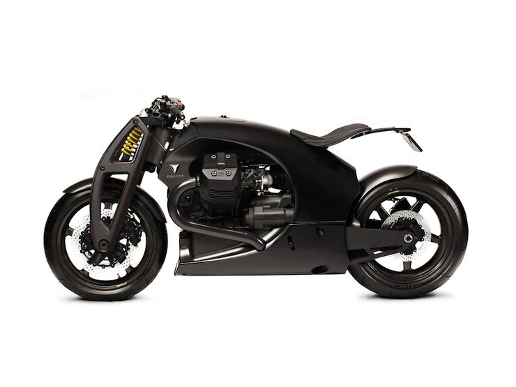 The Renard GT is powered by a Moto Guzzi Quattrovalvole v-twin with a displacement of 1326cc, it produces 123 hp at 7100 rpm and 134 Nm of torque at 5600 rpm. power is transmissted to the rear wheel via a mechanical 6-speed transmission and a shaft-drive, the suspension is provided by Öhlins on the front and back end and the frame is a single-unit carbon fibre monocoque giving the bike a relatively light weight of 170kgs.