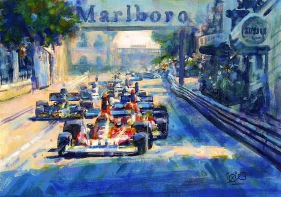 “In 1987 I painted my own pass and got everywhere…! At night I was sleeping in the caves up on the hills, then during the day selling my work by the yachts in the harbour – crazy times. Monaco is so intense, all these colours and shapes hustling for position, the contrasts and smoke… And so easy for drivers to lose it.”