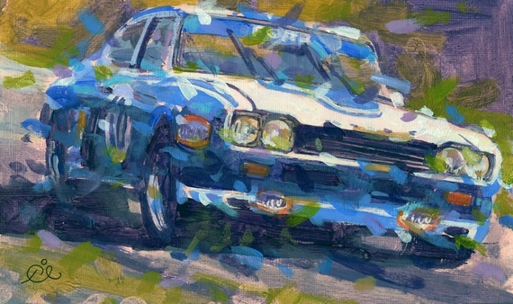 1971 Ford Capri, acrylic on paper 8” x 12”
