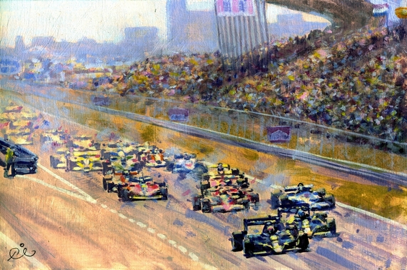 1978 Dutch Grand Prix, acrylic on paper 8” x 12”