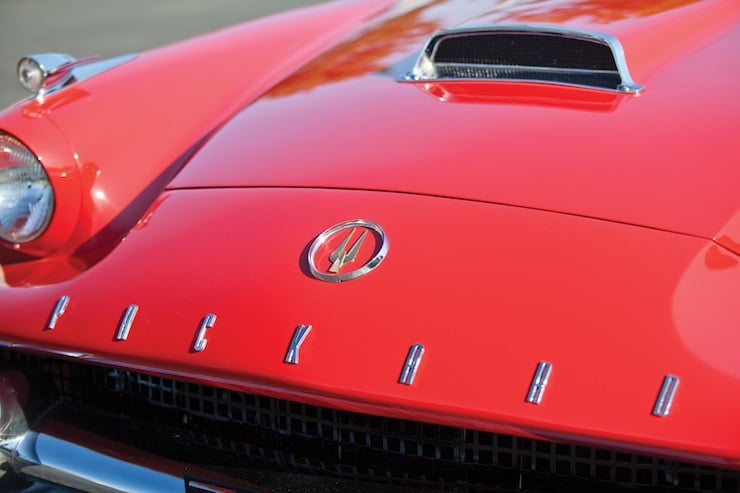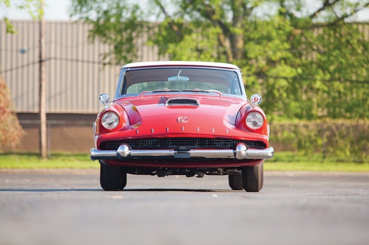 The 1957 Packard Hawk was modified for the 1958 model year with a new fiberglass nose section and an impressive, McCulloch-supercharged 289-cubic inch V8 engine with twin exhausts. This 275hp engine was fitted with a Stromberg two-barrel carburettor and then mated to a Borg-Warner Flight-O-Matic three-speed automatic transmission. The car rode on independent front suspension with unequal-length A-arms, coil springs and an anti-sway bar, it was also fitted with a live rear axle and semi-elliptic leaf springs.