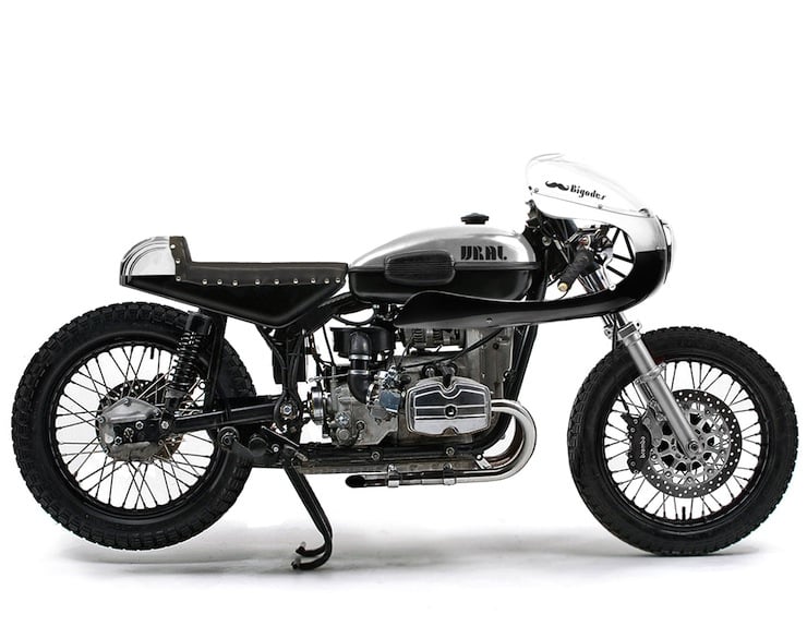 This incredible Ural Racer is a creation from the mind of Joao Alves, it’s based on a stock 2013 Ural Solo sT but I think you’ll agree, the finished bike looks like a totally new creature. Joao has given the Ural Racer a beautiful mid-70s fairing, a studded cafe racer seat, a 2-into-2 chopped exhaust, a set of clip-on handlebars and an entirely new personality.
