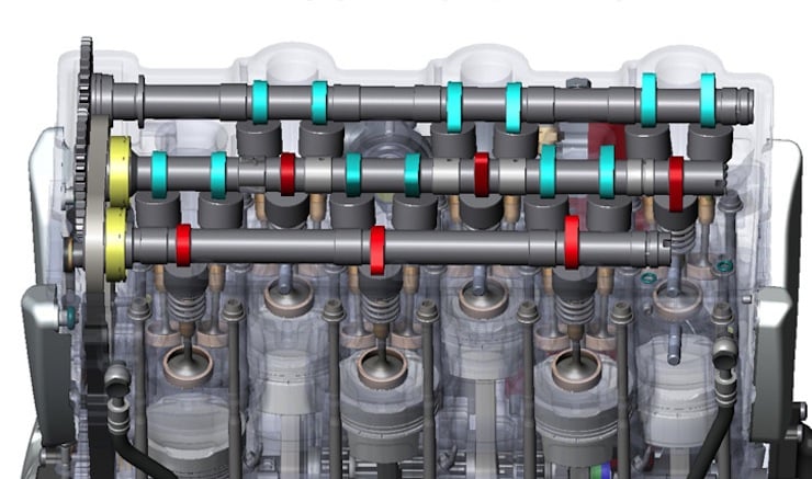 Piston engine layouts typically fall into three categories: inline, vee, and flat/boxer. The one setup you won’t find very often is the narrow-angle vee (or staggered cylinder) layout. Lancia was a pioneer of the format, introducing the 13-degree “Lambda” V-4 in 1922, and produced a series of narrow-angle designs up until the 1970s. A typical vee will have anything between 45 (Harley-Davidson V-twin) and 90 degree (Ducati L-twin). A narrow-angle vee (below 45 degrees) is so compact that both “banks” of cylinders can share the same block with a common cylinder head, making for a much more compact and lightweight package. You essentially combine the qualities of an inline engine with those of a vee – the block is as short as a vee, scarcely wider than an inline across the head, and shares the balance properties of an inline design. You get more cylinders into a much more compact package, with less complexity than a typical vee by combining the heads and block into a single unit.