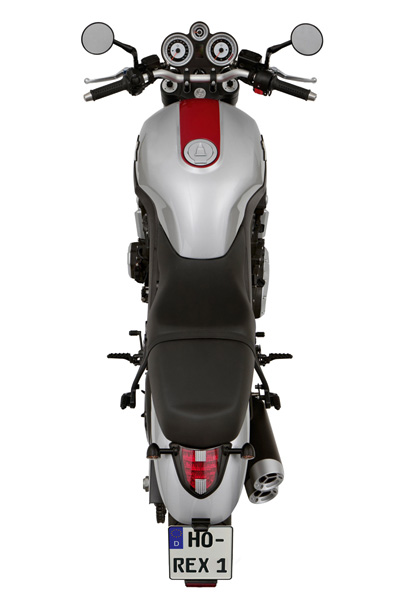 Historically, Horex was a German assembler of motorcycles founded in 1923 as an offshoot of the Rex glassworks company in Bad Homburg (hence the name, Ho Rex). The company began by building machines around outsourced four-stroke singles supplied by German manufacturer Columbus, eventually merging with Columbus in 1925 to bring engine production in-house. They produced a range of large displacement (250cc plus) singles and parallel twins that were well respected, with an occasional success in racing. Horex survived the Second World War and continued operating until 1956, when production was suspended after months of declining sales. Daimler-Benz then purchased the brand in 1960 and absorbed it into the DB empire. But the name was not dead. Friedl Münch, famous for his Mammut series of car-engined roadsters, purchased the rights to the brand in 1977. A massive 1400cc roadster dubbed the Horex 1400 TI was produced in 1978. The name was purchased again in the 1980s by Hörmann-Rawema and another attempt was made to revive the marque by building a series of sporting machines around Rotax and Honda four-stroke singles. Unfortunately, despite the production of some handsome and modern sport machines, the attempt didn’t succeed in reviving the storied brand and Horex laid dormant during the 1990s and 2000s.