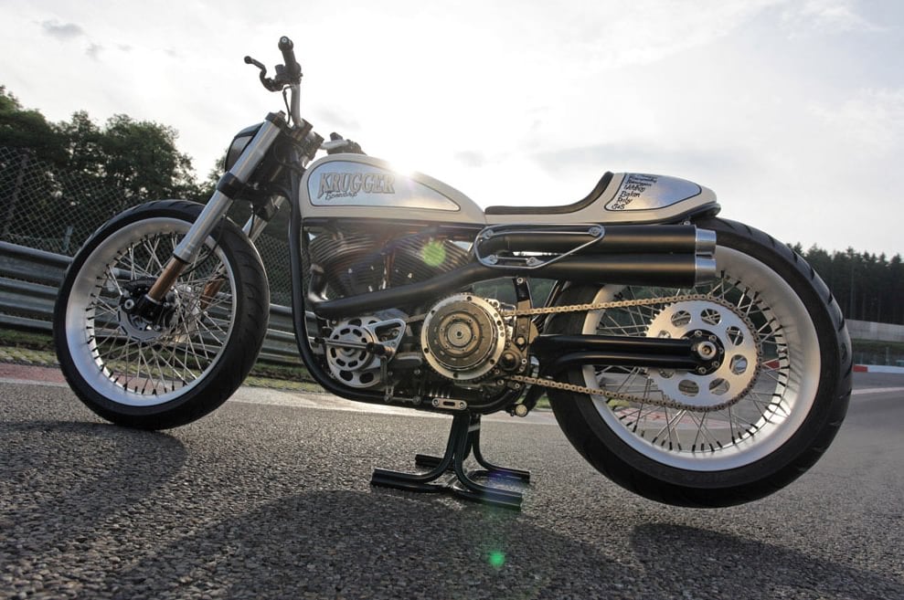 Fred wanted to create a motorcycle that would evoke memories of the classic Harley-Davidson XR750, a racing motorcycle so well loved that there are entire communities dedicated to keeping them running even today. The Krugger Overmile runs a 103 ci (1700cc) S&S V-Twin driving the rear tire through a 6-speed Baker PowerBox with overdrive, though no specific power numbers are listed, you can bet they’ll be high enough to get you into serious trouble.