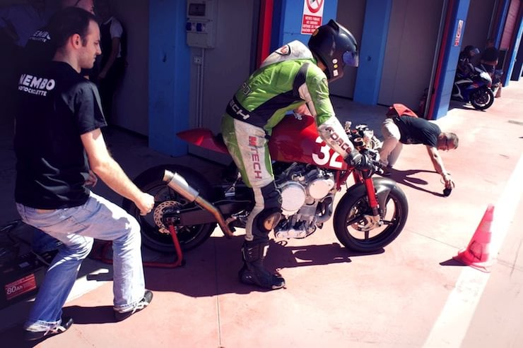 Not satisfied with this lack of information I contacted Nembo directly. Owner Daniele Sabatini was kind enough to answer my questions and provide an updated press release that details the current state of the project. He was also kind enough to provide exclusive photos of the Nembo being track tested at the Adria circuit. I’ve posted a copy of the press release on the OddBike Facebook page and at the bottom of this page.