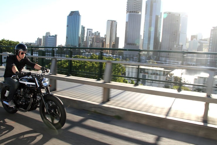 This particular CB250N was built by the guys at Ellapsede for the Brisbane based Gents clothing store Apartment, it’s designed to both be ridden and to look good standing still, which isn’t a bad fundamental philosophy to hold when building any sort of vehicle. Ellapede stripped the bike back to its essential parts and set about making a few modifications, all of the original lights were discarded, new handlebars were sourced, bar-end mirrors were fitted, the electrics were moved up under the seat to clear out the mid-frame area and a deep black paint job was added to any exposed surface that would benefit from it.